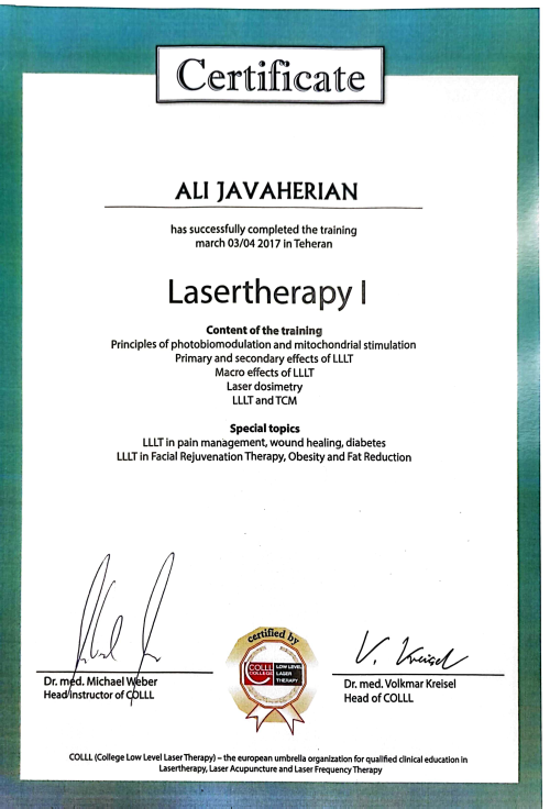 گواهینامه های بین المللی دکتر علی جواهریان، حاصل سال ها آموزش تخصصی در معتبر ترین موسسات ایران و جهان است.